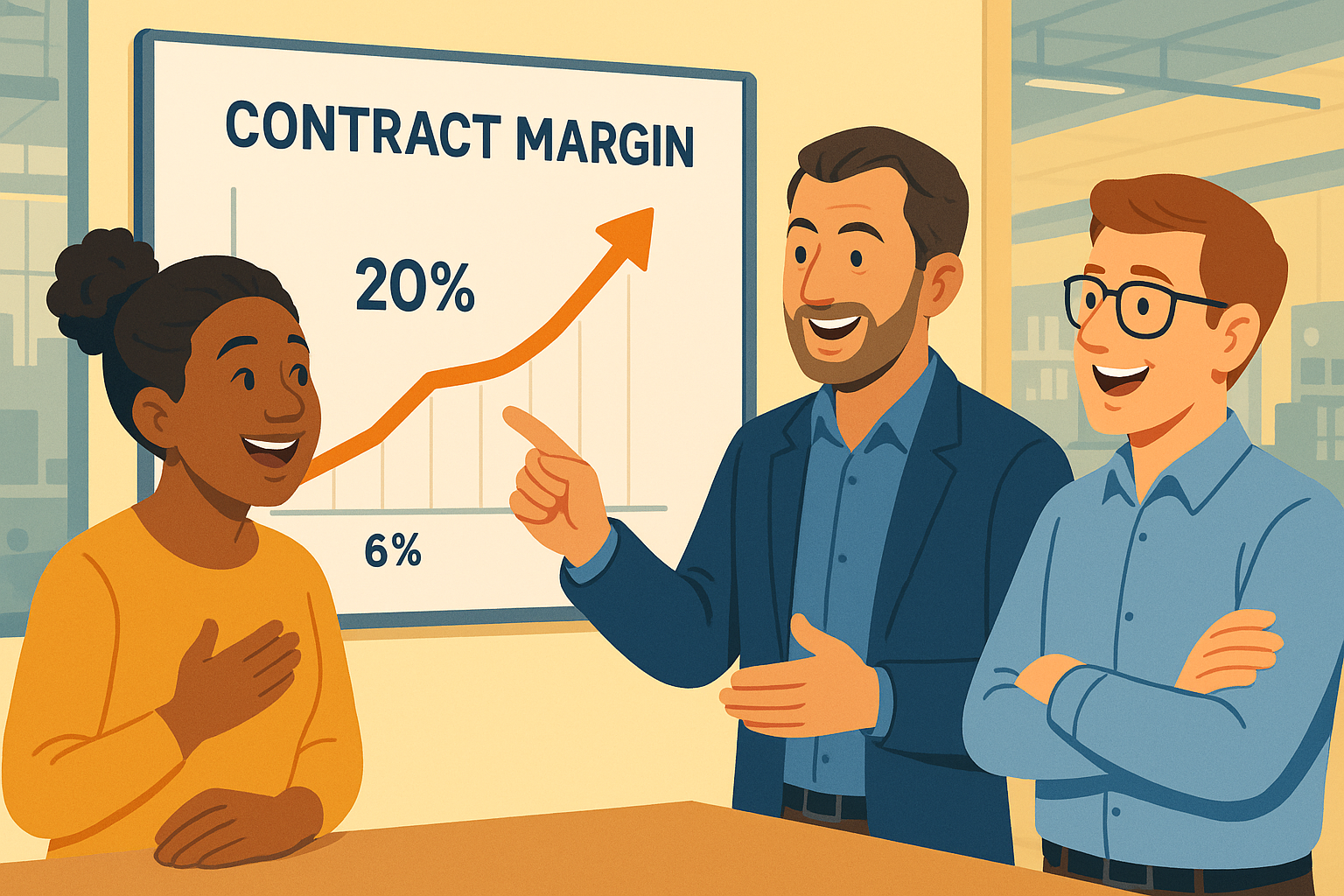 Armed with new insights, the client reviewed other accounts. Two smaller contracts were also underperforming against benchmark margins. Both were successfully renegotiated.